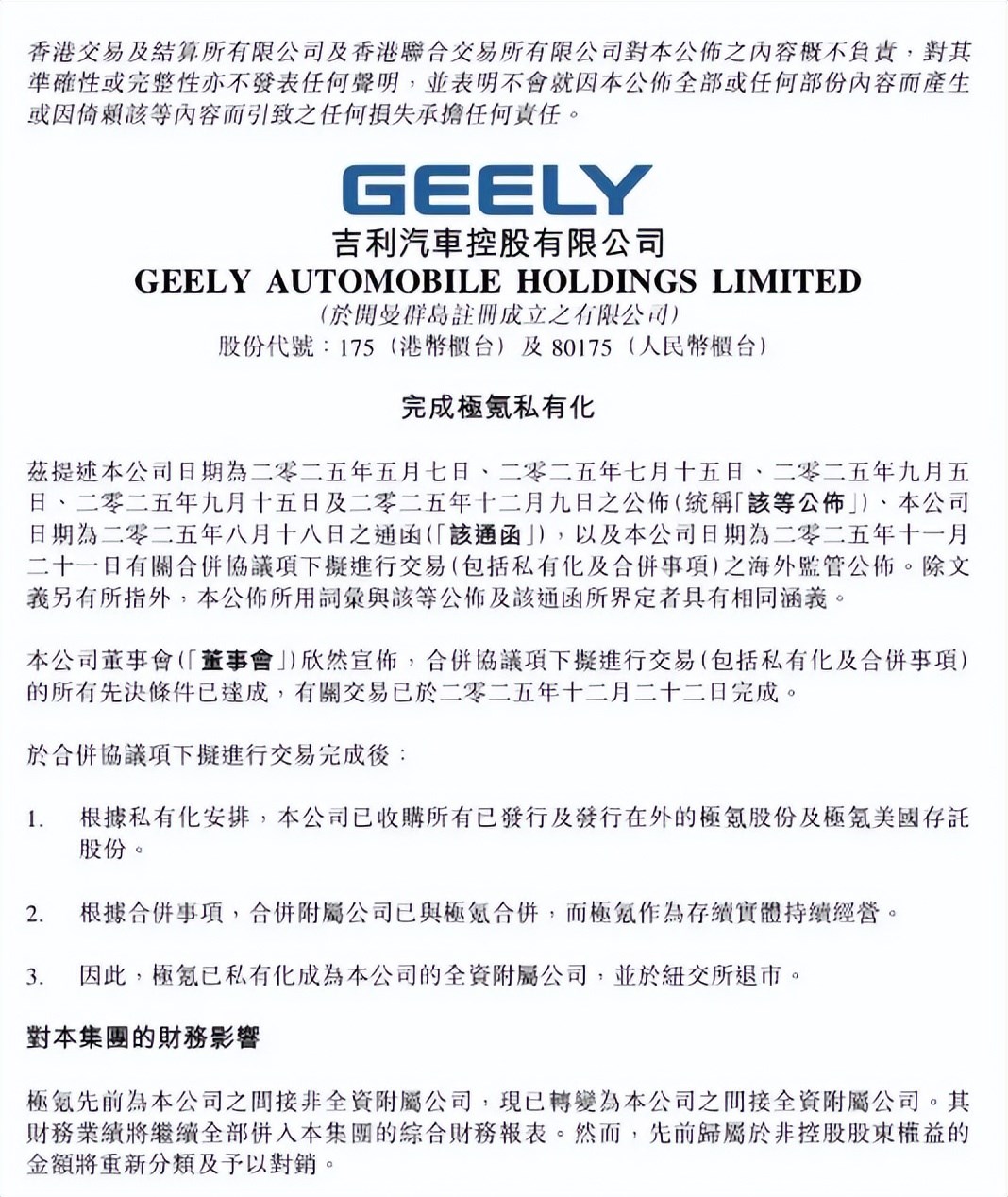 12月22日晚,吉利正式官宣完成對(duì)極氪的私有化,極氪成了吉利的全資附屬公司,同時(shí)從紐交所摘牌退市。從今年5月提出收購(gòu)到最終落地,這場(chǎng)歷時(shí)7個(gè)月的整合,看似是一個(gè)品牌的“回歸”,實(shí)則藏著中國(guó)汽車產(chǎn)業(yè)從“單點(diǎn)突破”轉(zhuǎn)向“體系作戰(zhàn)”的大邏輯。咱們?nèi)锶硕记宄?,這事兒對(duì)吉利、對(duì)極氪,甚至對(duì)整個(gè)行業(yè),都不是小事。